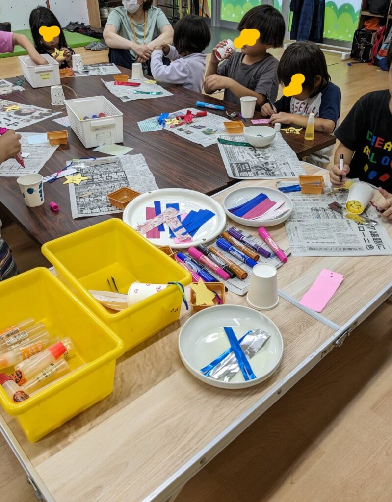 紙コップで七夕飾りを作りました♪