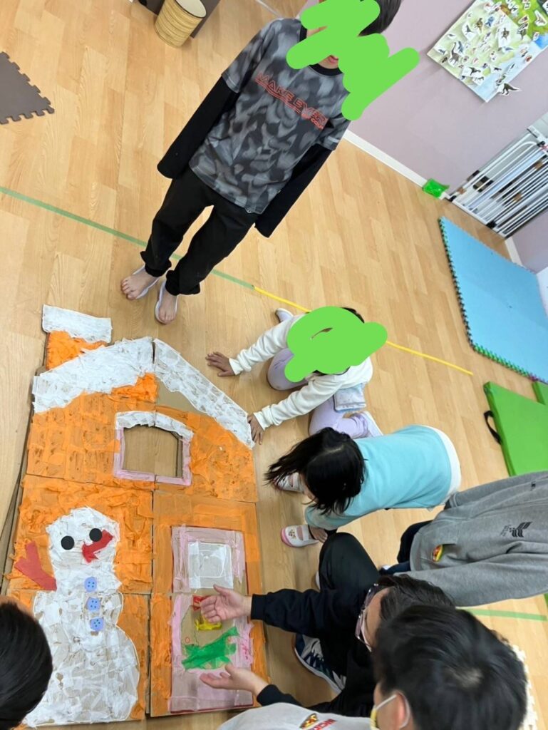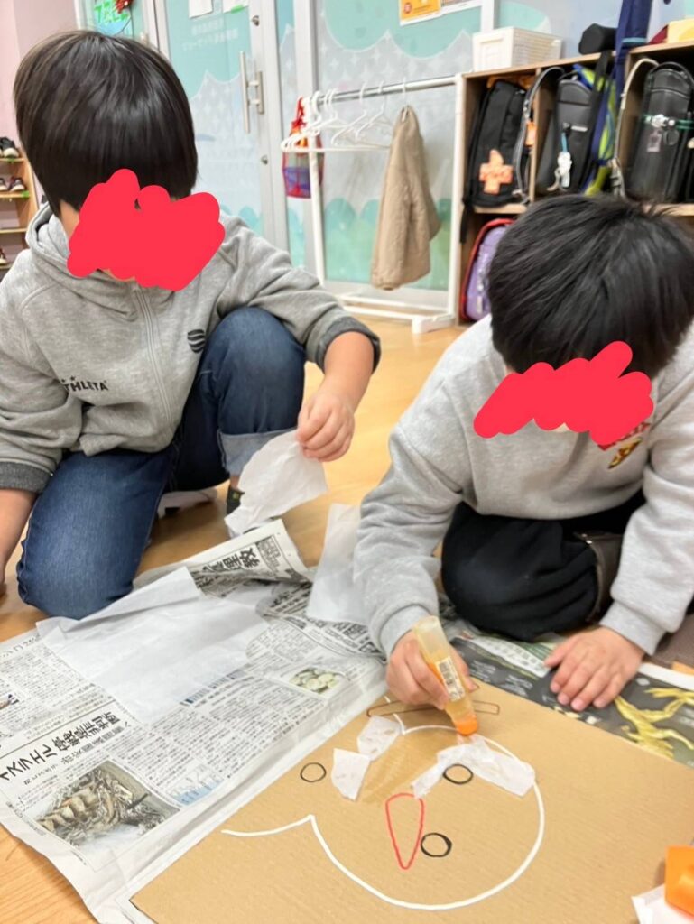 ちぎった用紙をペタペタと貼り付け、それぞれのパーツを合体させると、、、
