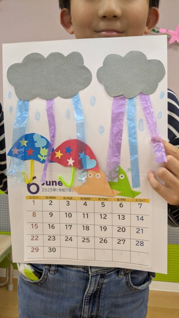 6月のカレンダーは、カエルさんが雨に喜びケロケロ鳴いています🐸🎶