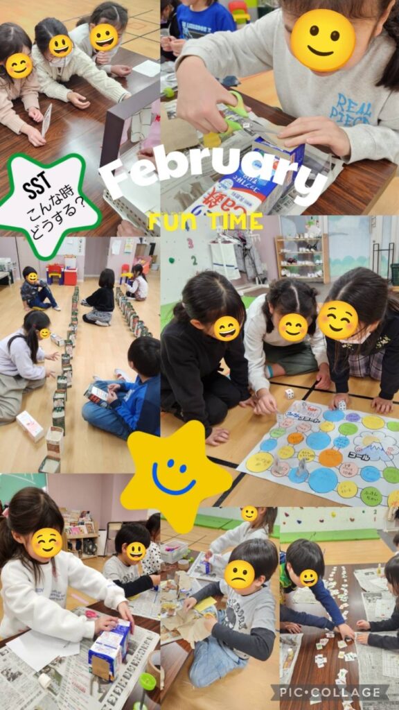 2月の活動👹 2026年3月2日 ブログ 今月は節分の鬼のお面を作ったり、SSTペープサートで楽しみながらお話しをしたり、人間クレーンゲームに挑戦したりしました🏗️ 心の中に居る泣き虫鬼や怒りん坊鬼、色々な鬼を追い出して元気いっぱいのTREEっ子達です😁 URL Copied!