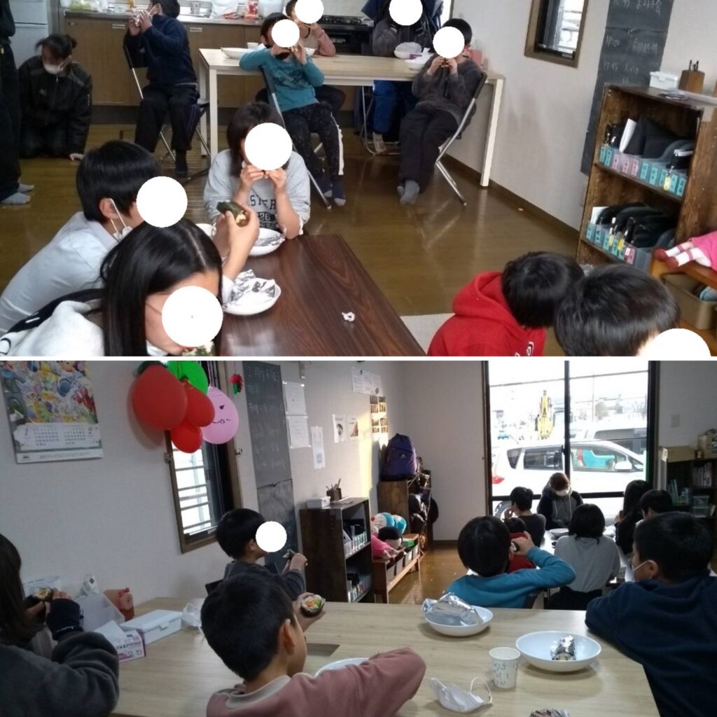みんなで南南東を向いて恵方巻きを食べました(*^^*)