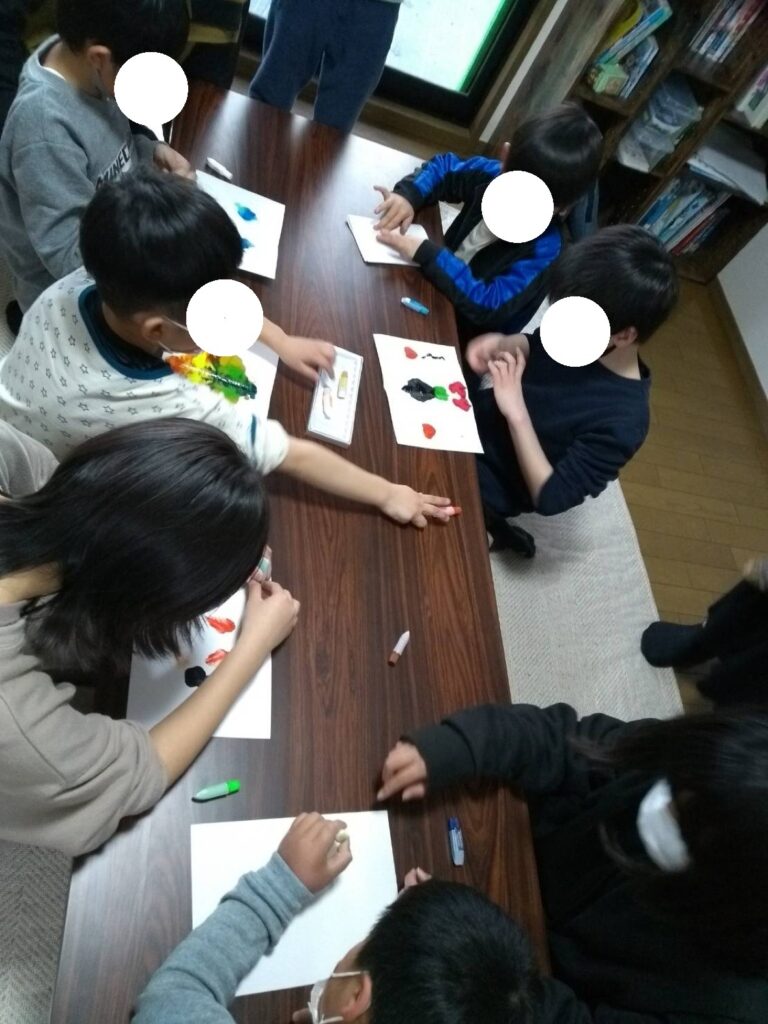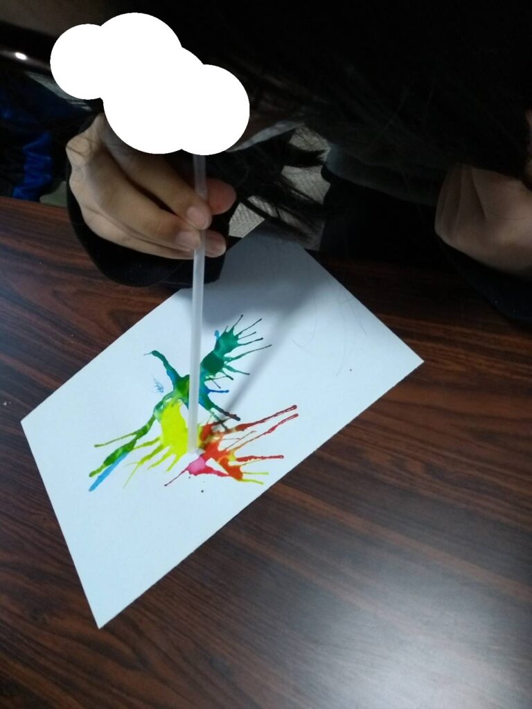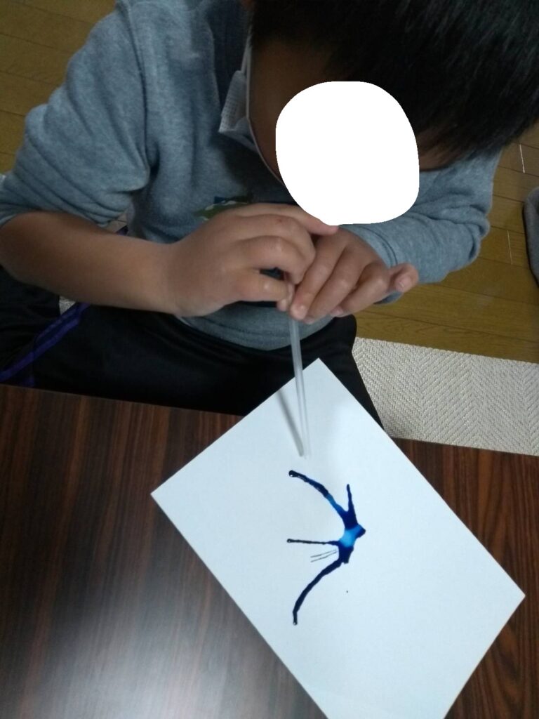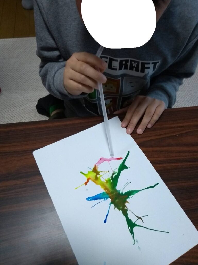 好きな色の絵の具に息を吹きかけたり