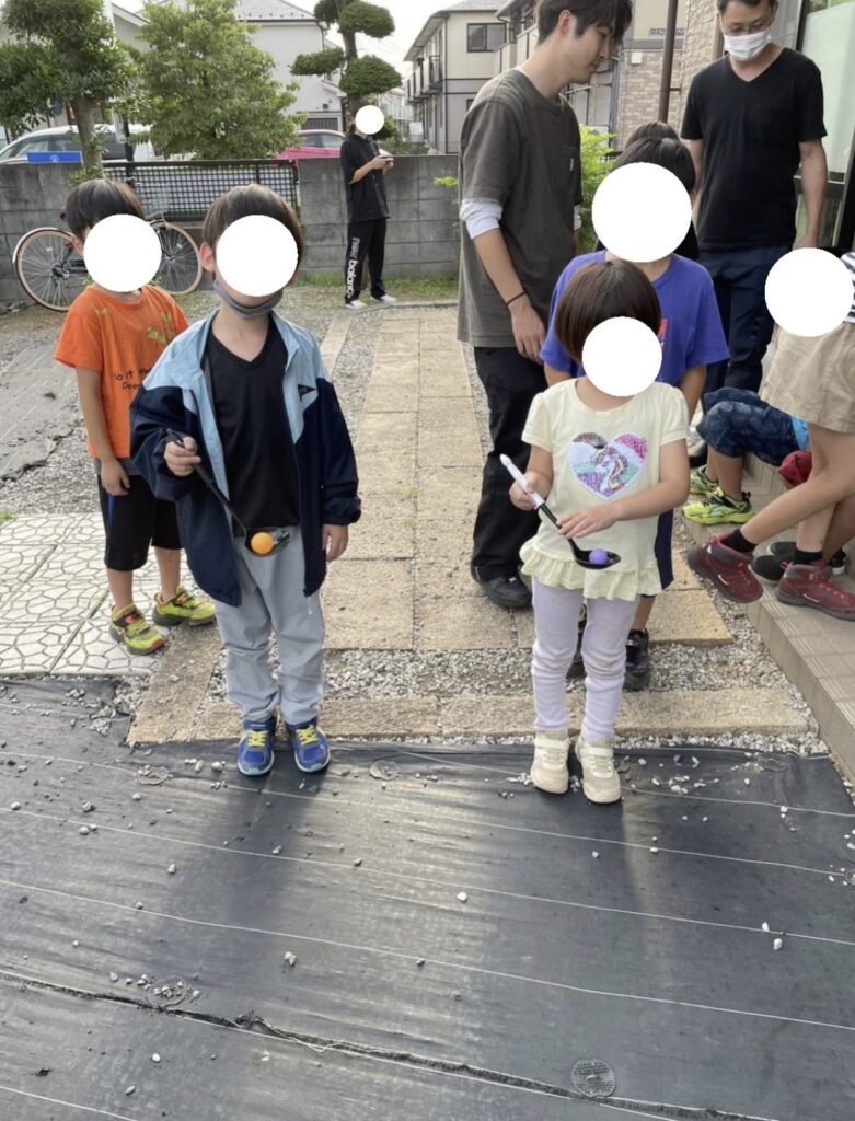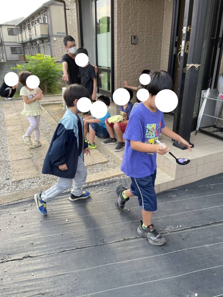 お玉に載せたピンポン玉を落とさないようにリレーしました😙