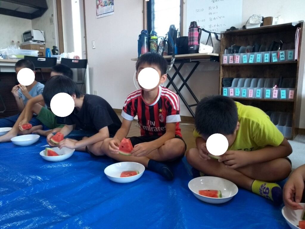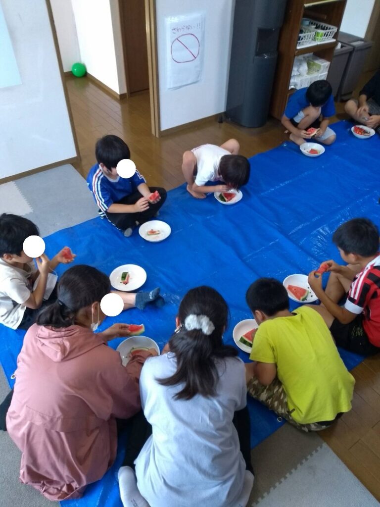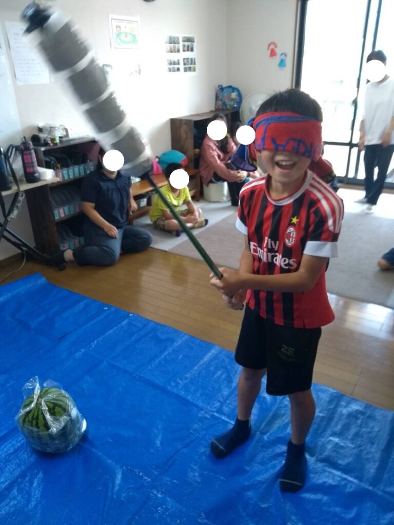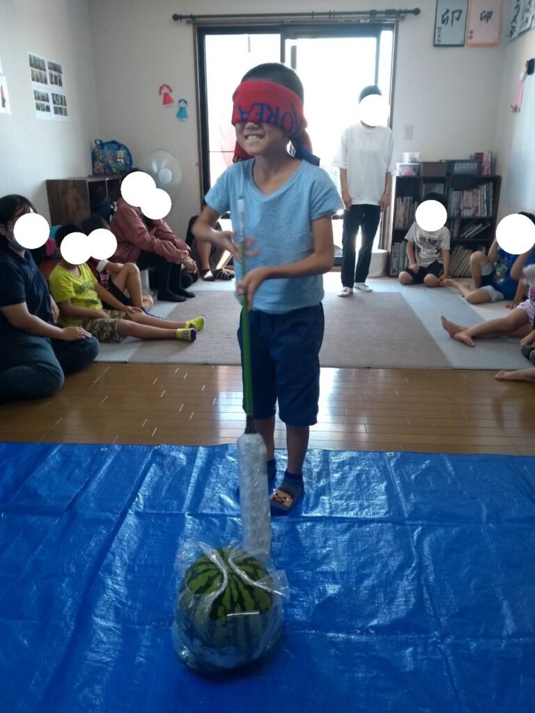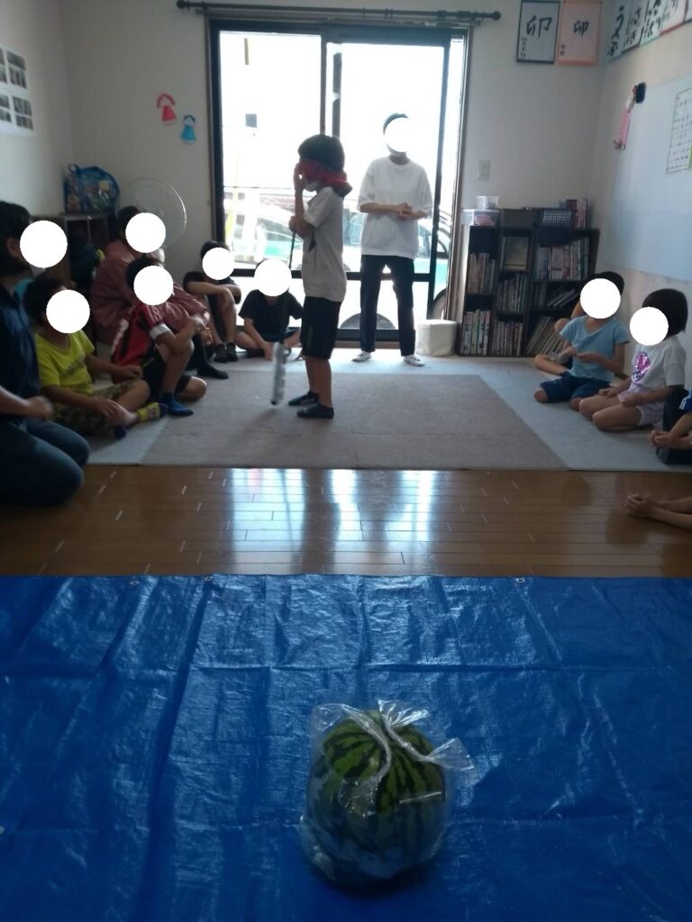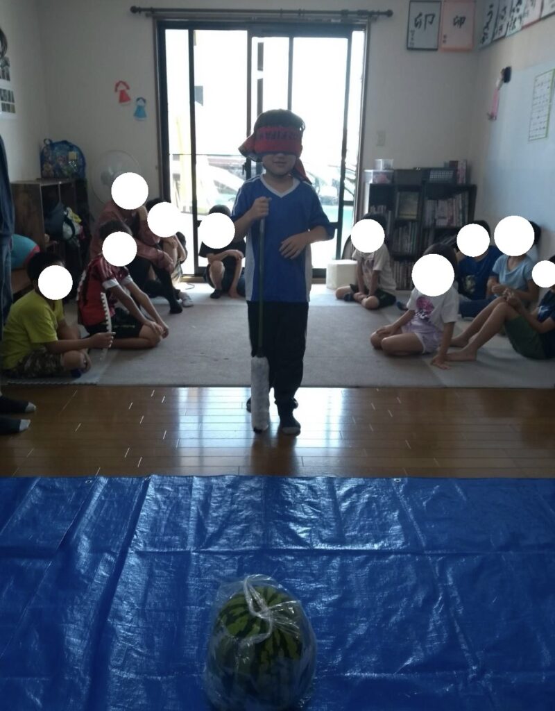 割る子も声をかける子も大盛りあがりのスイカ割りでした🍉