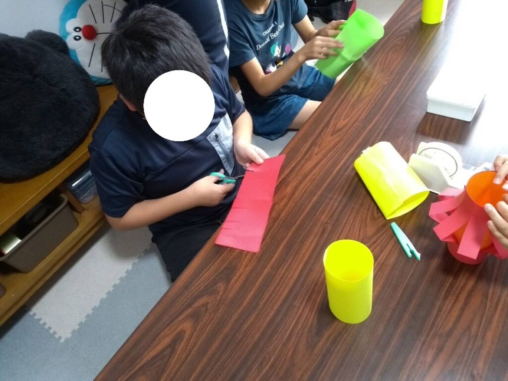 8月に行う夏祭りの飾りづくりをしてもらいました🌻