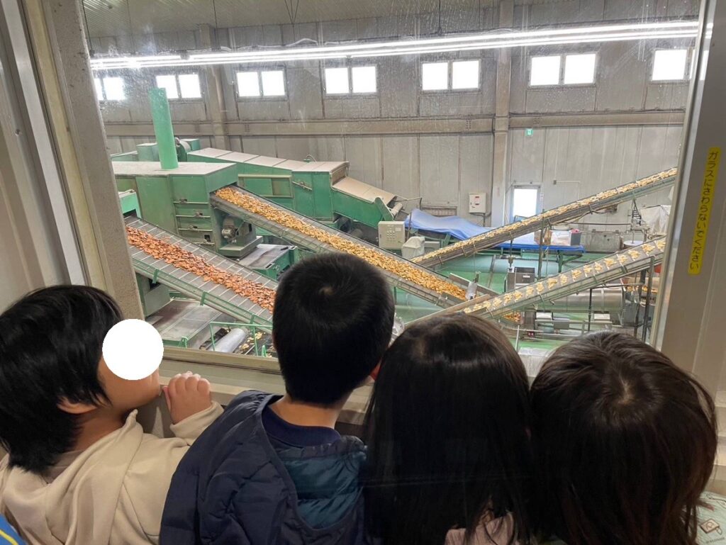 大きな機械でたくさんのおせんべいがつくられる様子に子どもたちは興味津々でした😆